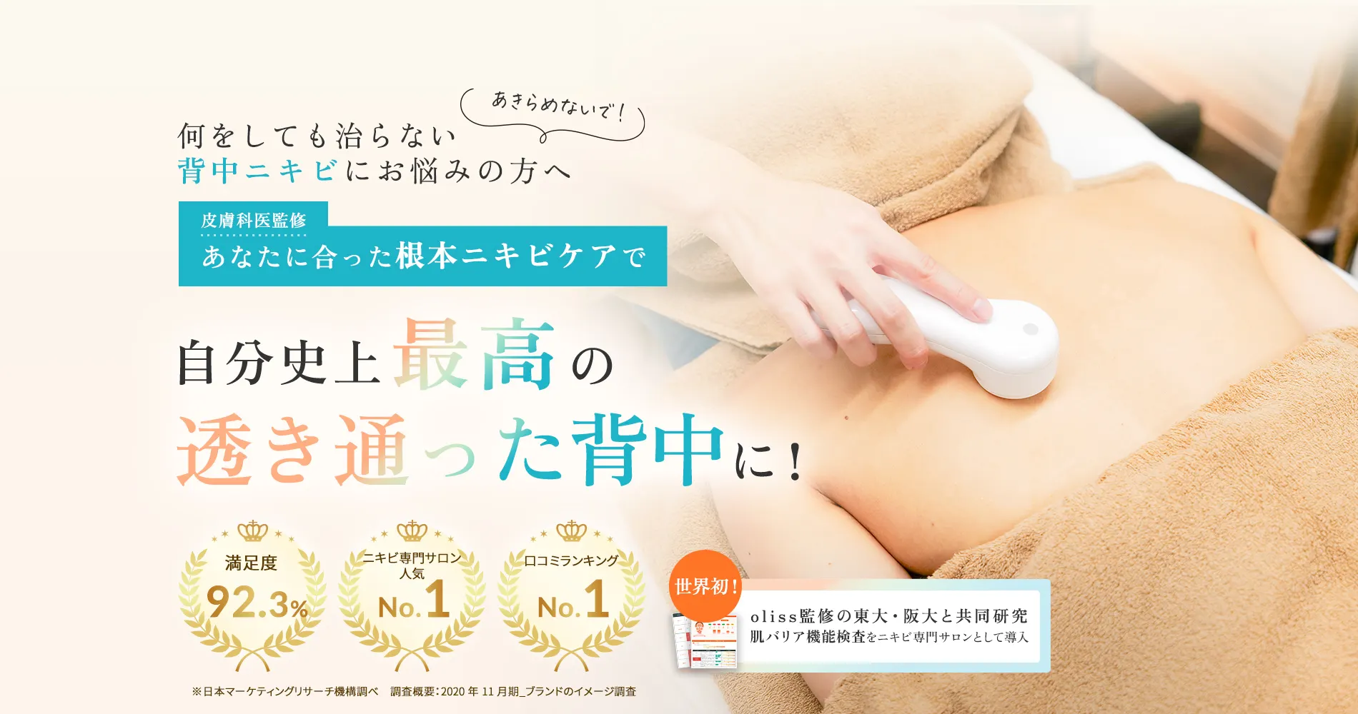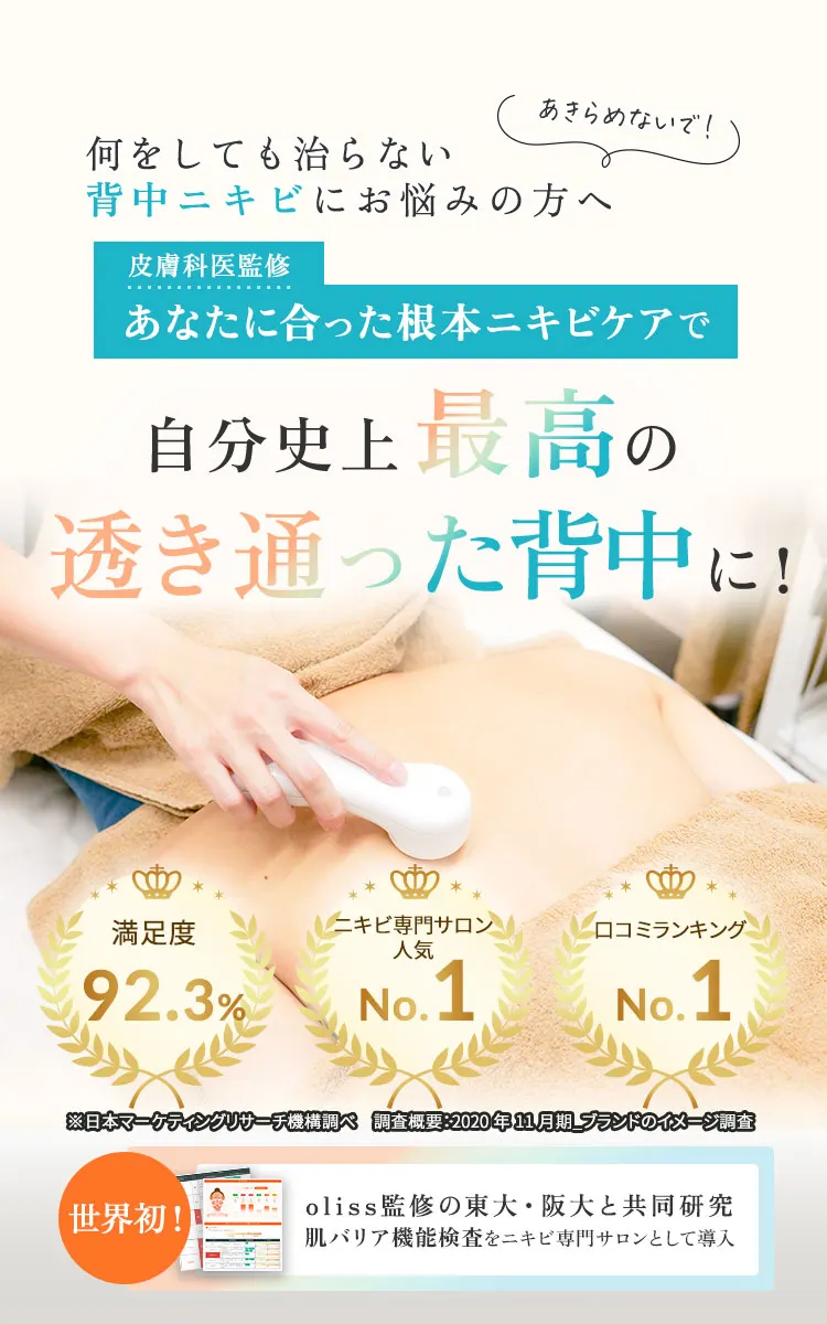 繰り返し背中ニキビに悩まされ、どこに行っても治らなかったという方は、ぜひ一度olissの体験をお受けください。